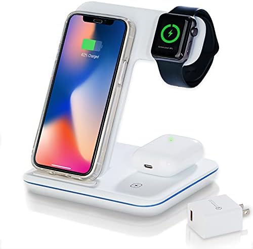Avis sur [Dome Life] Station de charge sans fil 3 en 1, chargeur sans fil rapide QI 15 W par Whitestone, compatible avec iPhone 12/11/Pro/Max/XR/XS/XS Max/X/8/8 Plus/Samsung/Apple Watch Series/AirPods Pro