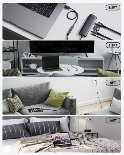 1, la transmission vidéo sera instable en raison de l’atténuation du signal vidéo du connecteur. Nous suggérons une longueur totale inférieure à 10 pieds pour votre câble HDMI USB C et ce câble d’extension afin d’obtenir la meilleure charge et les meilleures performances vidéo 4K.