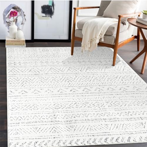 Le Prix Grand tapis marocain 12,7 x 17,8 cm, gris, antidérapant, lavable, à poils courts, pour chambre à coucher, tapis d’intérieur vieilli à poils courts pour chambre à coucher, salle de bain, salon