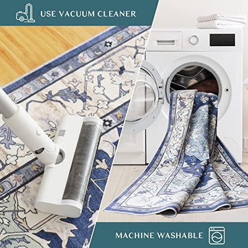 Le Prix HOMFINE Tapis 5 x 7 – Tapis doux lavable à poils ras avec envers antidérapant, motif floral bleu, tapis vintage pour salon, chambre à coucher, salle à manger, bureau à domicile