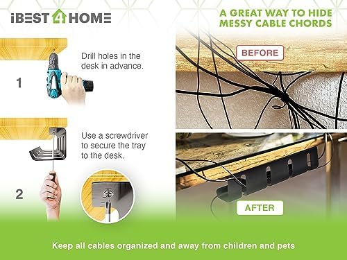 Avis sur IBEST4HOME Ensemble de plateaux de gestion des câbles sous le bureau Noir – Organiseur de cordons sous le bureau Kit de chemin de câbles pour la gestion des fils pour ordinateur