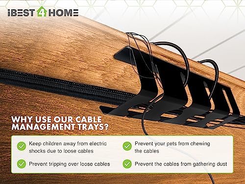 Le Prix IBEST4HOME Ensemble de plateaux de gestion des câbles sous le bureau Noir – Organiseur de cordons sous le bureau Kit de chemin de câbles pour la gestion des fils pour ordinateur