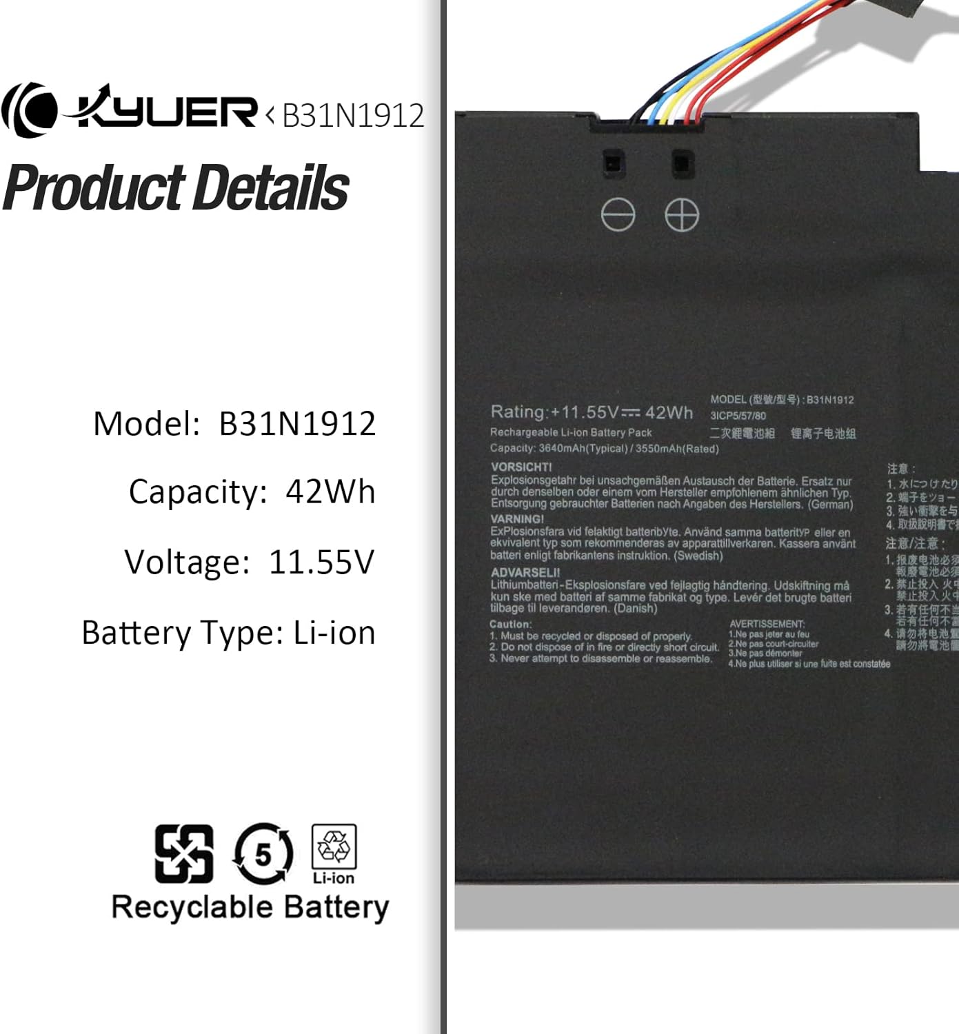 Avis sur K KYUER 42Wh B31N1912 C31N1912 Batterie pour ASUS VivoBook Go 14 15 E410KA E410MA E510KA E510MA L410MA L510MA F414MA R522MA E410KA-EK037WS E410KA-EK037TS E410MA-BV1312WS E510MA-EJ614 F414MA-EK1890WS