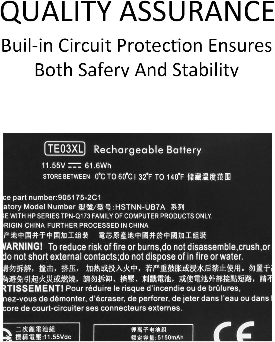 Fiche Technique K KYUER TE03XL Batterie pour HP Omen 15-ax000 Pavilion 15-bc000 15-bc000ng bc003ng bc004ng bc005ng bc006ng bc009ng bc011ng 15-ax007ng ax003ng ax000nl ax005ng ax001ns ax008ns ax038nf ax009ng TPN-Q173 au Maroc