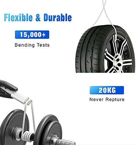 Câbles Lightning durables ultimes : les câbles pour iPhone ont été testés pour résister à au moins 15 000 cycles de courbure à 95 degrés et à une durée de vie de 15 000 branchements et débranchements, ce qui est 12 fois plus résistant que les câbles de l’appareil d’origine. Le connecteur soudé au laser sans couture peut même résister à une force extérieure de 20 kg sans se rompre. Vous pouvez l’utiliser en toute confiance à tout moment.