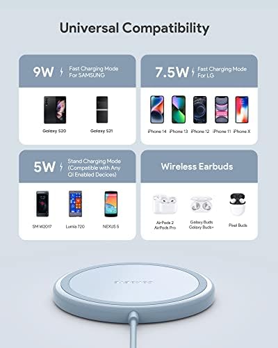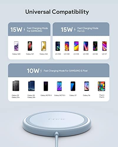 Fiche Technique Lot de 2 chargeurs sans fil rapides 15 W maximum compatibles avec iPhone 13/13 Pro/13 Mini/13 ProMax/12/SE/11/Samsung Galaxy S21/S20/Note 10/Edge Note 20Ultra/S10, AirPods Pro… (Bleu)