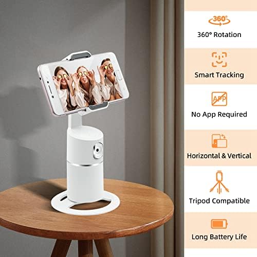 Avis sur Mcbazel Trépied de suivi automatique du visage, aucune application requise, batterie rechargeable, rotation à 360°, support de suivi du téléphone, support de caméra pour le visage, le corps, le chat vidéo en streaming Vlog en direct – Blanc