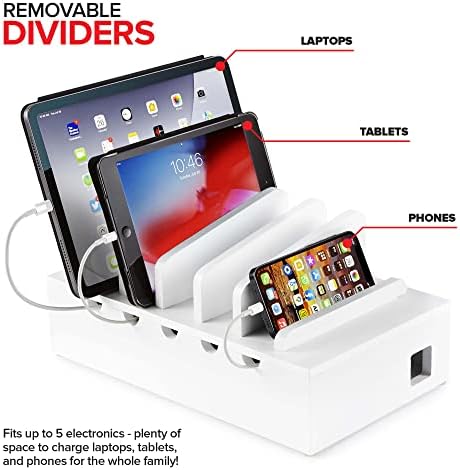 Séparateurs amovibles : notre support électronique comprend 6 séparateurs pour séparer et ranger soigneusement tous vos appareils. Il peut accueillir jusqu’à 5 appareils électroniques – suffisamment d’espace pour charger des ordinateurs portables, des tablettes et des téléphones pour toute la famille !