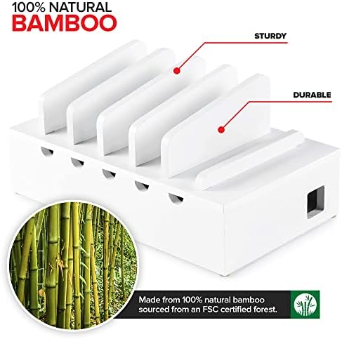 Le Prix Modern Innovations Station de chargement en bambou pour plusieurs appareils (blanc), organiseur d’appareils en bois, support de bureau pour chargeur de téléphone portable, compatible avec Apple, Android, iPad, iPhone, tablette, ordinateur portable