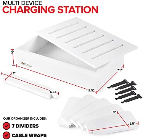 Convient aux multiprises de 11 pouces ou moins. Cela rend nos stations compatibles avec n’importe quel appareil comme un smartphone, une tablette, un iPad, une montre intelligente, Fitbit, et plus encore ! Dimensions : 12,5″ L x 7,5″ L x 3″ H. Séparateur : 6,5″ L x 3″ H.