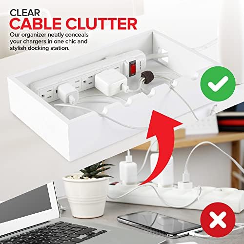 Effacer l’encombrement des câbles : fini les fils lâches et en désordre poussés dans le tiroir à déchets. Notre organisateur dissimule soigneusement vos chargeurs dans une station d’accueil chic et élégante. Comprend des enveloppes de câbles réglables pour garder tous vos cordons ensemble et à l’écart.
