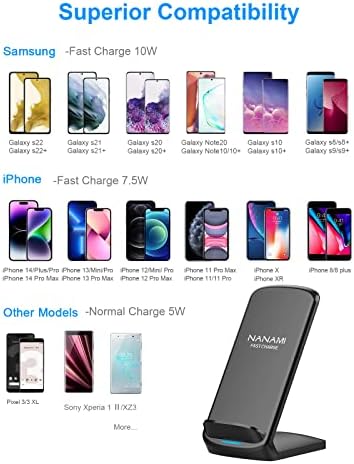Avis sur NANAMI Chargeur sans fil rapide, support de charge sans fil certifié Qi avec adaptateur QC3.0, chargeur USB pour iPhone 14/13/12/SE 2020/11/XS Max/XR, 10 W compatible Samsung Galaxy S23/S22/S21/S20/S10/S9 /Remarque 20