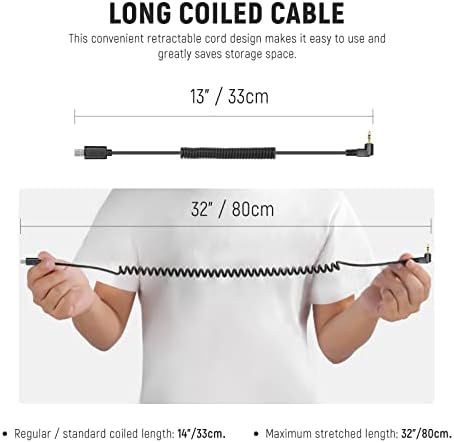 【Câble extensible】 Le câble enroulé peut s’étirer de 13″ à 32″ (33 à 80 cm) pour un fonctionnement sans effort