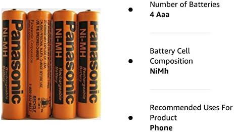 Piles Panasonic super fraîches et originales emballées en vrac, pas sous blister. 4 piles Panasonic AA NiMH fonctionneront pour presque tous les téléphones qui utilisent des piles rechargeables AAA. Elles sont de 700 mAh, mais fonctionneront avec d’autres batteries de rechange mAh pour les téléphones Panasonic sans fil Dect 6.0 et KX-TG43xx : KX-TG1032/33/34, KX-. Série TG823x, série KX-TG63xx, série KX-TG93xx, série KX-TG43xx, KX-TH1211/12, KX-TGA101/430/630/930/931032B,