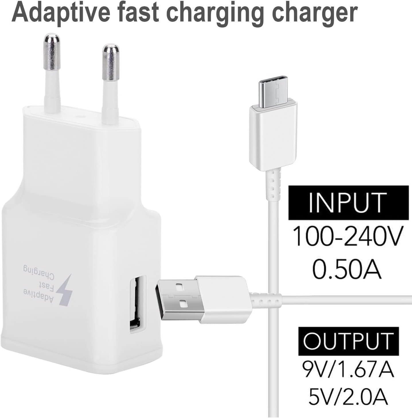 Adaptive Quick charge cordon de charge de type C: Adaptive Quick charge la batterie de votre téléphone jusqu’à 50% en 30 minutes, soit 75% plus rapidement qu’un chargeur standard. Câble de charge rapide de type C pour chargeur rapide Samsung.