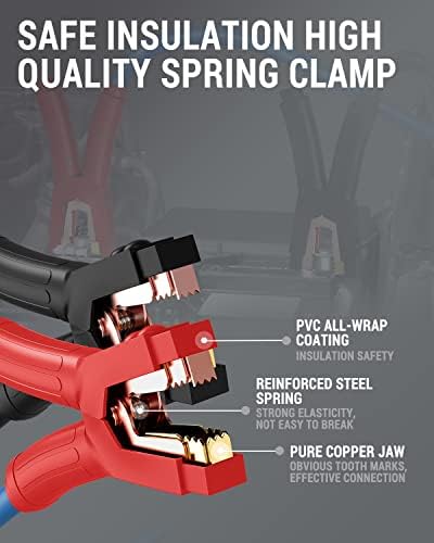 Superbe performance : équipés d’un noyau en fil de cuivre haute densité, nos câbles de démarrage robustes fonctionnent efficacement même à des températures extrêmes (-40 ℉ ~ 140 ℉). Avec un revêtement en caoutchouc épais à double étage, les câbles de démarrage de batterie P025 peuvent être plus sûrs et plus résistants à l’usure lors de l’utilisation.