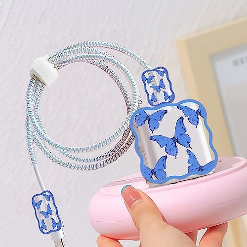 Le Prix Protecteur de câble mignon pour chargeur d’iPhone, motif papillon bleu kawaii, bord ondulé, câble de données, chargeur USB, ligne de données, économiseur de fil, protecteur de chargeur de téléphone pour iPhone 11 12 13 14 Pro Max XS XR X 7 8 Plus