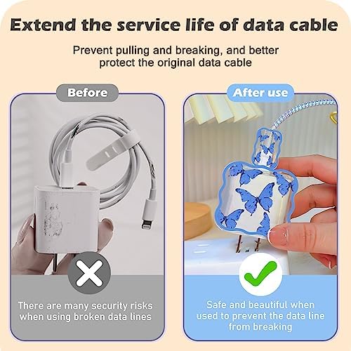 Voici le prix pour acheter Protecteur de câble mignon pour chargeur d’iPhone, motif papillon bleu kawaii, bord ondulé, câble de données, chargeur USB, ligne de données, économiseur de fil, protecteur de chargeur de téléphone pour iPhone 11 12 13 14 Pro Max XS XR X 7 8 Plus
