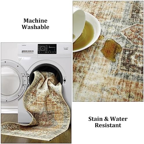 Voici le prix pour acheter ROYHOME Washable Rug 5×7 Vintage Persian Area Rug Indoor Floor Cover Print Distressed Carpet Non Slip Low Pile Rugs Machine Washable Boho Rug for Bedroom Living Room, 5’x7’, Brown au Maroc
