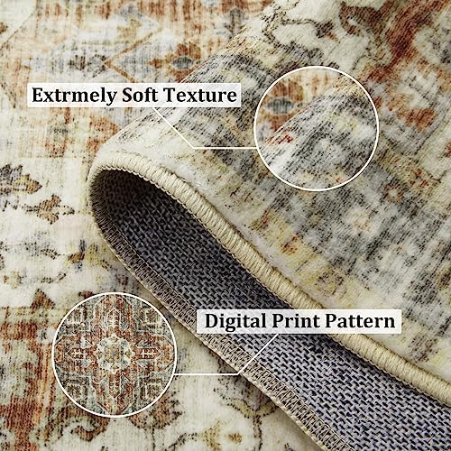 Le Prix ROYHOME Washable Rug 5×7 Vintage Persian Area Rug Indoor Floor Cover Print Distressed Carpet Non Slip Low Pile Rugs Machine Washable Boho Rug for Bedroom Living Room, 5’x7’, Brown au Maroc