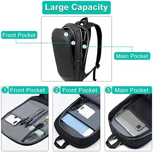 Fiche Technique Sac à dos d’affaires pour hommes 17 pouces, fin et extensible, étanche, sac à dos de voyage pour ordinateur portable avec port de chargeur USB, antivol, grand sac d’ordinateur de travail léger, sacs à dos pour ordinateur portable d’université, cadeaux pour hommes et femmes