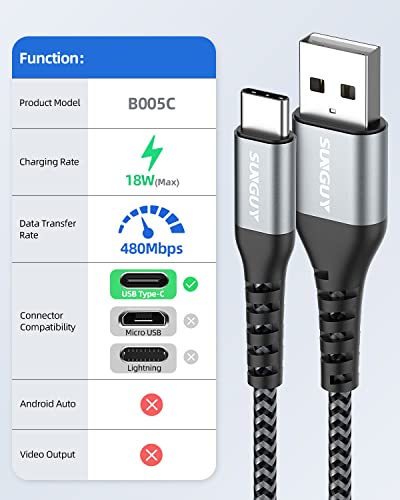 Fiche Technique SUNGUY Lot de 3 câbles USB C de 30 cm et câble de données de type C pour Samsung Galaxy S10 S9 S8 S21 S20FE S20 Plus, Huawei P30/P20/P10, Google Pixel Gris au Maroc