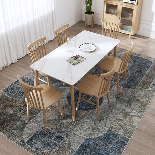 Avis sur Tapis de 22,9 x 30,5 cm pour salon, chambre à coucher, lavable en machine avec envers antidérapant, doux, grande surface, tapis de sol vintage en patchwork pour salle à manger, chambre d’enfant, bureau, bleu/gris