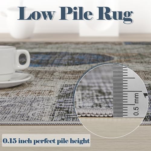 Le Prix Tapis de 22,9 x 30,5 cm pour salon, chambre à coucher, lavable en machine avec envers antidérapant, doux, grande surface, tapis de sol vintage en patchwork pour salle à manger, chambre d’enfant, bureau, bleu/gris
