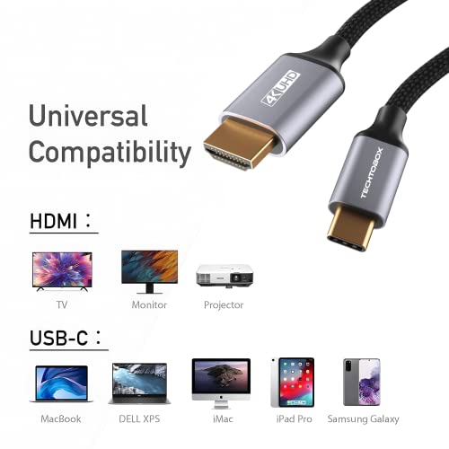 Le Prix TECHTOBOX Câble USB C vers HDMI 4K, cordon tressé de type C vers HDMI, câble Thunderbolt 3/4 vers HDMI pour MacBook Pro/Air, iPad Pro, Galaxy, Dell, HP et autres