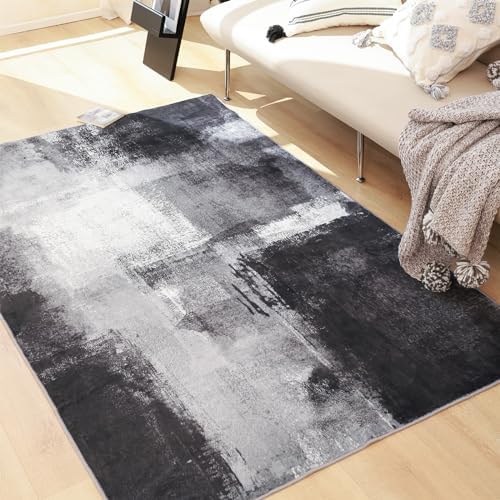 TRUEDAYS Tapis lavable 3 x 5 – Tapis moderne noir et blanc avec motifs abstraits pour entrée, salon, chambre à coucher – Tapis abstrait doux antidérapant à poils courts pour intérieur pour décoration de la maison