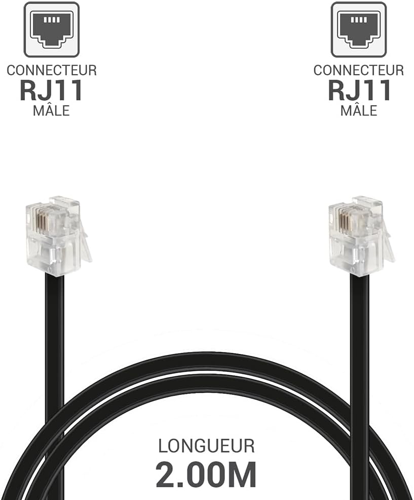 Avis sur Waytex RJ11 Cable 2 m M/M for ADSL Box or Fixed Telephone, Flat RJ11 Male to Male Cable Length 2 m – Black