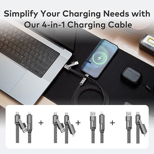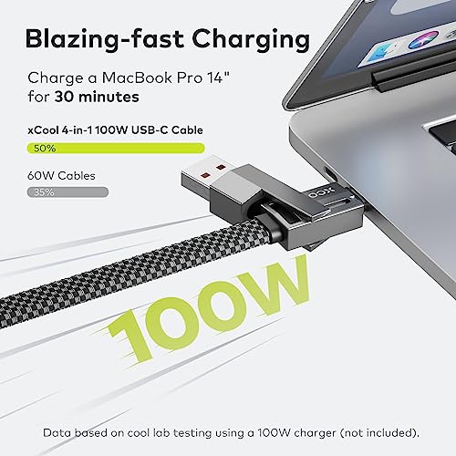 Le Prix XCOOL Câble USB C, câble USB-C 4 en 1 (6 pieds), câble de chargeur USB-C 100 W avec fermeture auto-agrippante et gestion des câbles, câble USB-C/charge rapide pour MacBook, iPad, iPhone, Samsung , Gris