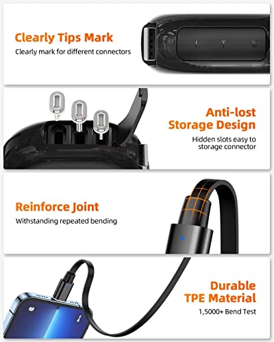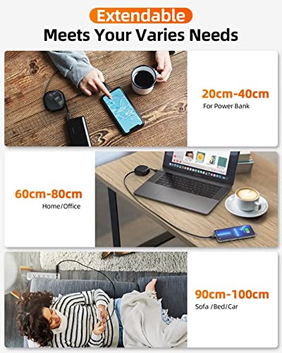 Portable et facile à organiser : disponible à tout moment et n’importe où. Le câble rétractable 3 en 1 est très facile à plier et à placer dans votre sac à main, sac pour ordinateur portable, poche, etc. La longueur idéale 3,Ft/1M est optimale pour une utilisation à la maison, au bureau, en voiture, en voyage et plus encore.
