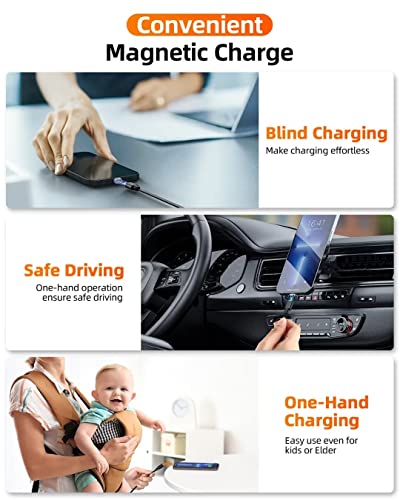Pratique – Utilisation à une main : les câbles de chargement USB magnétiques prennent en charge la connexion automatique de l’aimant. Un aimant puissant assure une connexion stable. Plus facile et plus sûr de charger votre téléphone d’une seule main, pratique et sûr pendant que vous conduisez, c’est le meilleur choix pour les conducteurs, les malvoyants et les personnes âgées.