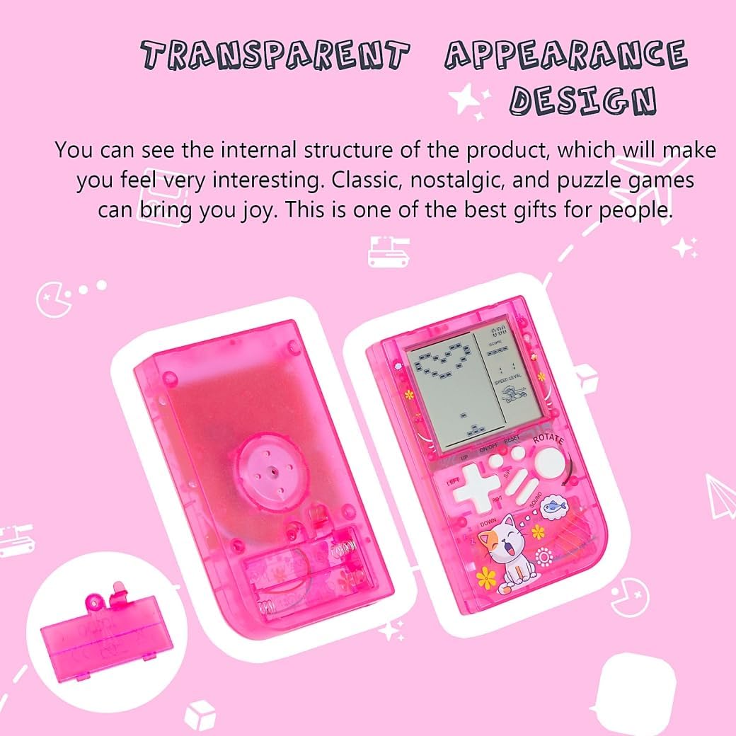Avis sur CZT Créative Transparente Petite Machine à Briques Console de Jeu rétro Console de Jeu Portable Puzzle intéressant Pratique pour Transporter des Cadeaux pour Enfants Console de Jeu de Poche(Pink)