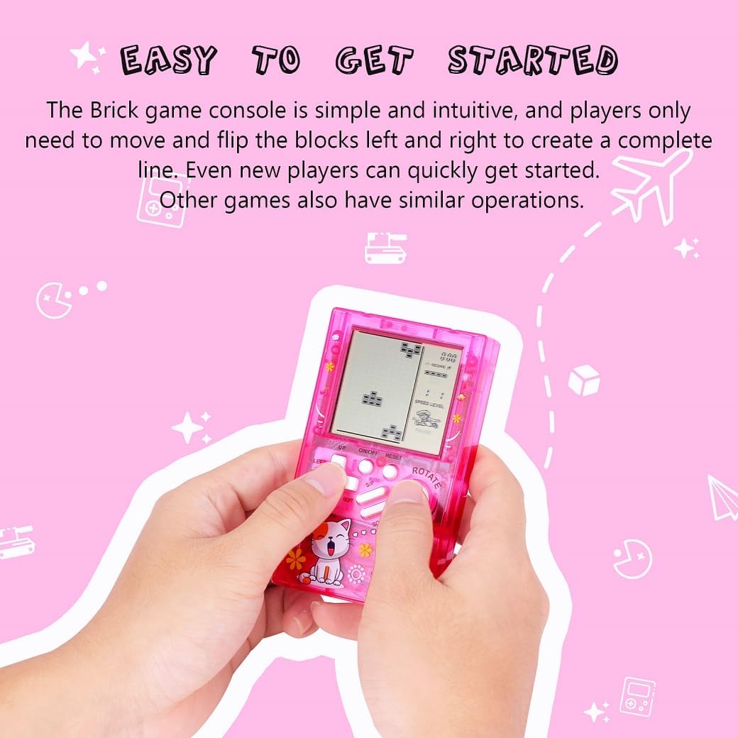 Le Prix CZT Créative Transparente Petite Machine à Briques Console de Jeu rétro Console de Jeu Portable Puzzle intéressant Pratique pour Transporter des Cadeaux pour Enfants Console de Jeu de Poche(Pink) au Maroc