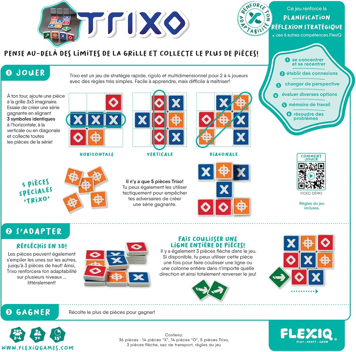Fiche Technique FlexiQ – Asmodee – Trixo – Board Games – Strategy and Thinking Games – Travel and Pocket Games – Family Games for Ages 7+ – 2-4 Players – French Version FXQTRIX01FR au Maroc