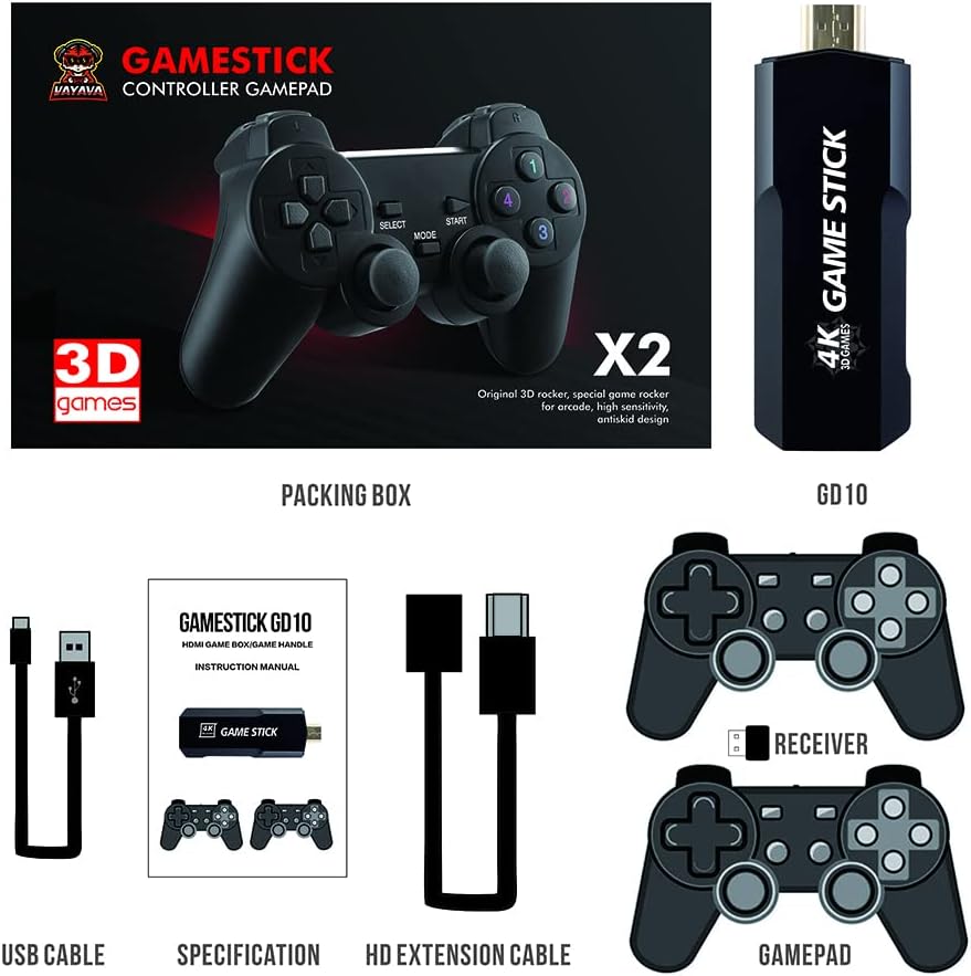 🎮Package Including : Console de jeu * 1. Câble USB * 1. Manette de jeu * 2. Câble HDMI * 1. Récepteur USB * 1
