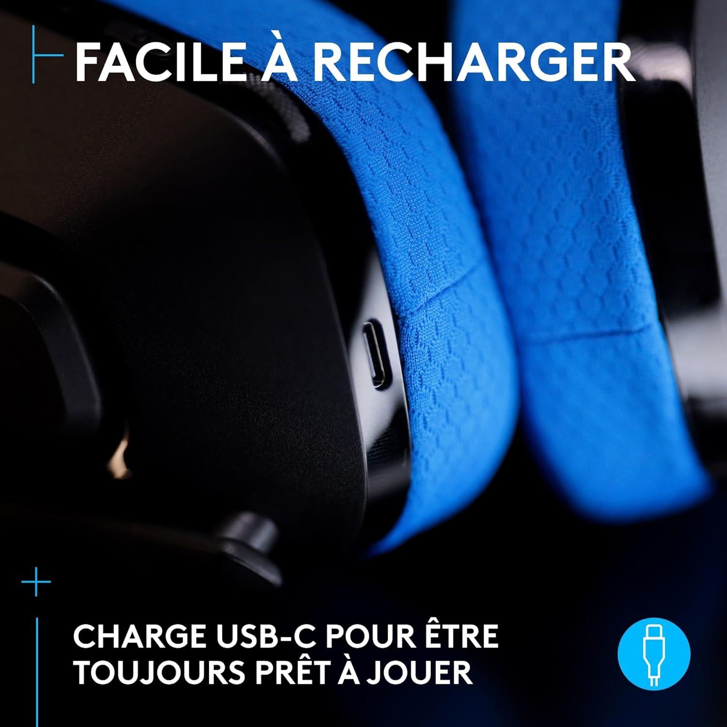 Fiche Technique Logitech G G535 Lightspeed Wireless Gaming Headset – Lightweight Over-Ear Headset, Micro Flip-up Sound Disable Function, 33 Hours of Battery Life, PS5, PS4, PC, USB-C Rechargeable – Black/Blue au Maroc