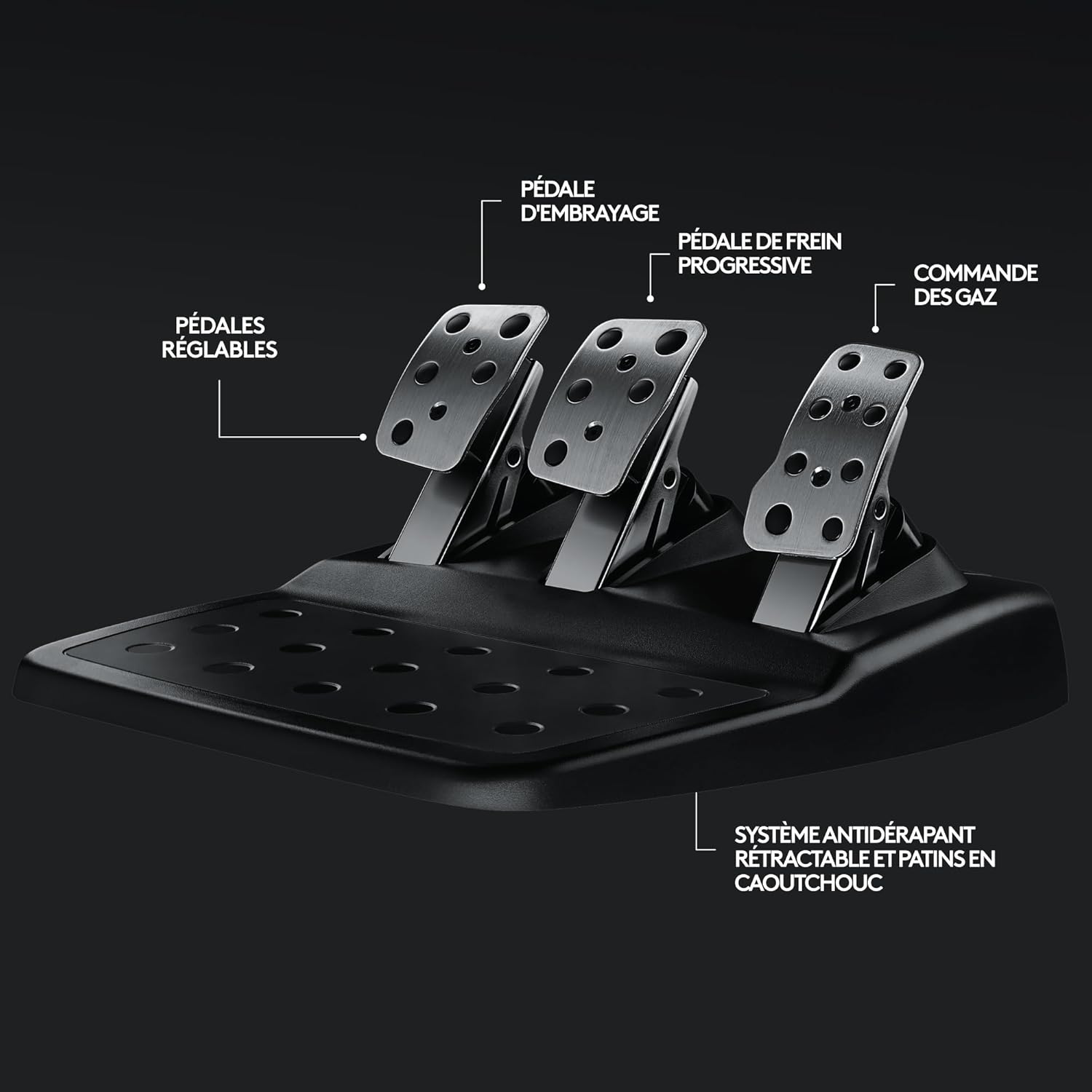Pédales Réglables: Maintenez une position de conduite plus vraie que nature grâce à l’unité de pédales séparée intégrant commande des gaz, pédales d’embrayage et de frein
