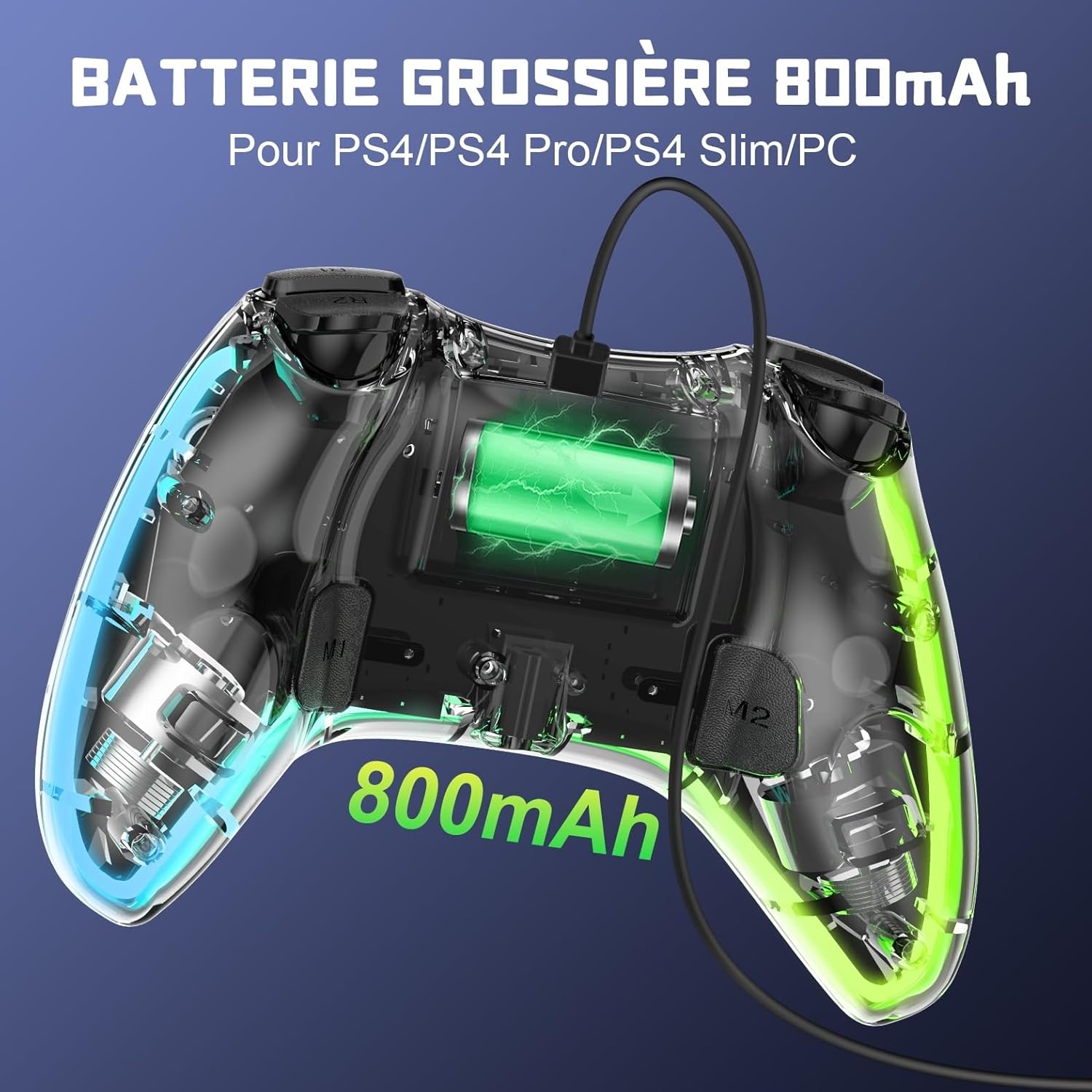 Avis sur Manette Sans Fil pour PS-4, Manette de jeu avec Lumière RVB, Turbo, Macro M1/M2, Manette Joystick Gamepad avec Double Vibration/3.5mm Audio/Touch Panel/Gyroscopique à 6 Axes pour PS4/Pro/Slim -Noir
