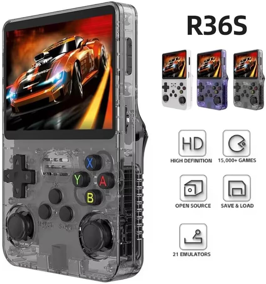Le Prix r36s Console de jeu portable portable 15 000 jeux classiques intégrés, écran IPS HD de 3,5″, 8 heures de veille rechargeable, console de jeu portable avec carte TF 64 Go (noir) au Maroc