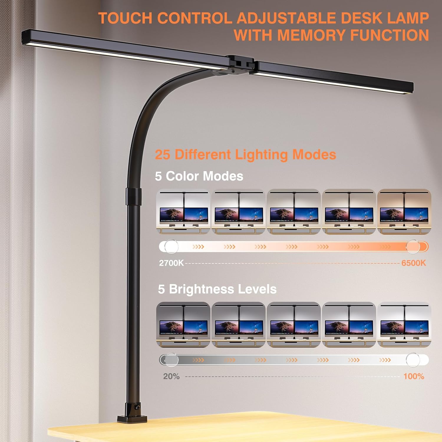 Voici le prix pour acheter Tyonto 1300LM Lampe de Bureau à Double Tête LED Réglable Avec télécommande, 24W 80CM Lampe à Pince pour Écran, Lumière à Domicile avec Bras Articulé, Pince gaming accessoire pc light room lumiere au Maroc