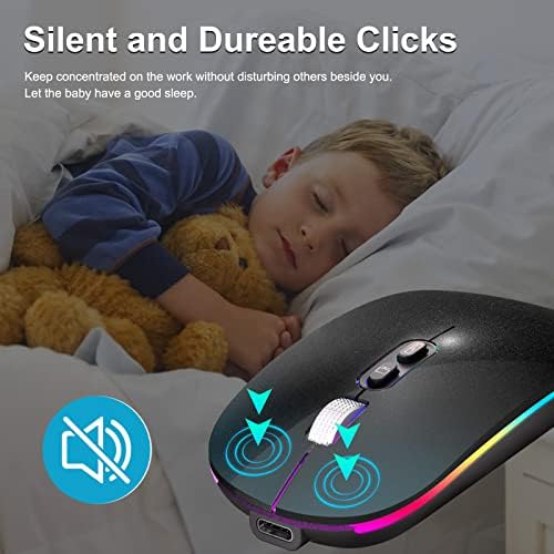 Souris optique rechargeable : batterie rechargeable durable intégrée, elle peut être facilement chargée à l’aide du câble USB inclus sans remplacer la batterie. Seulement 2 heures de charge, vous pouvez l’utiliser environ 7 à 15 jours. Le temps de veille est très long, des fonctionnalités d’économie d’énergie, un mode veille automatique et un mode réveil sont installés pour économiser de l’énergie. Éteignez la lumière LED de la souris lorsqu’elle n’est pas utilisée pour économiser de l’énergie.