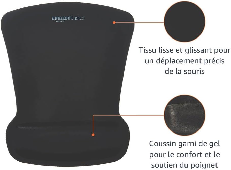 Voici le prix pour acheter Amazon Basics Irregular Mouse Pad with Gel Wrist Rest, 20 x 25 cm, Black au Maroc