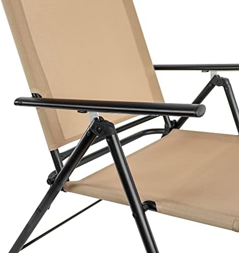 Le Prix Amazon Basics Sling Outdoor Folding Reclining Chaise Lounger – 2-Pack, Tan au Maroc