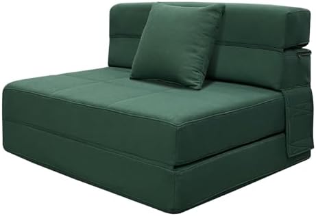Voici le prix pour acheter ANONER Canapé-lit pliable en mousse à mémoire de forme avec oreiller, chaise futon double pour salon, appartement, vert foncé