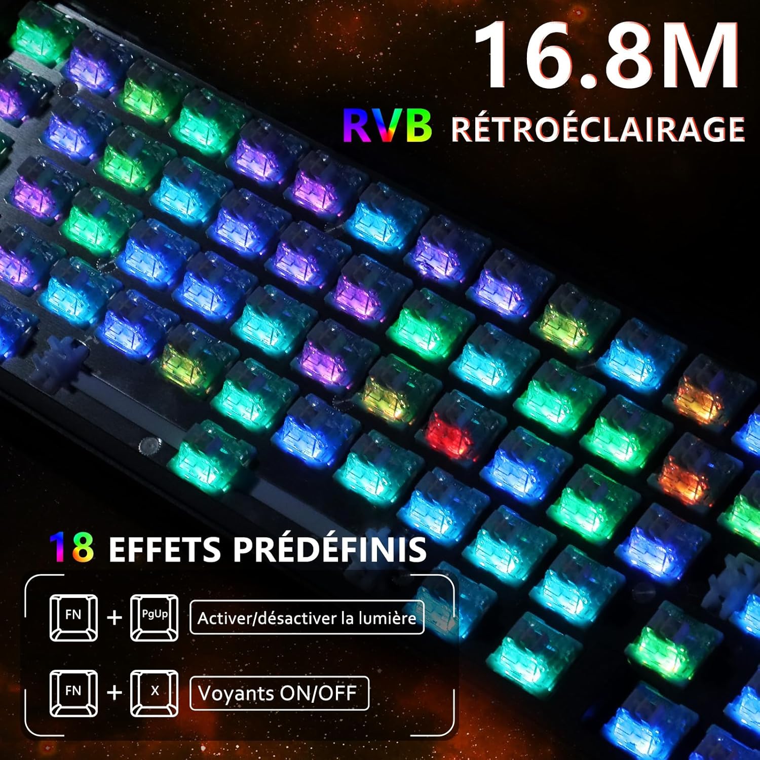 【PBT Keycaps & RGB Backlight】Designed with oil-resistant PBT keycaps, the keyboard offers a premium feel, increased durability and letters that remain legible and aesthetic over time. The built-in premium RGB backlight offers 16.8 million vibrant colors, with multiple preset modes and color combinations to illuminate your setup. The web driver also allows for thorough customization of RGB lighting effects.