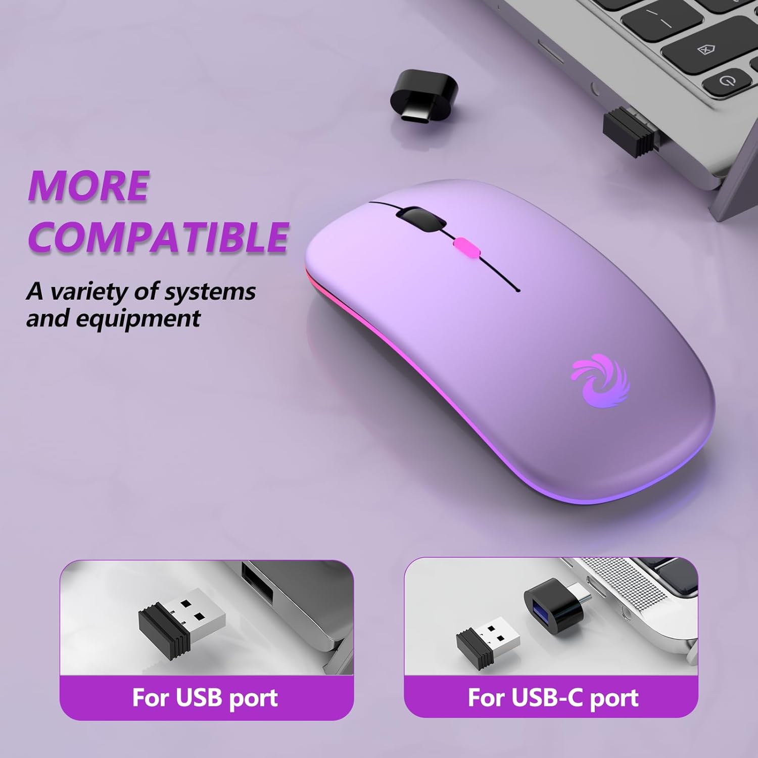 【Adjustable DPI & 7 Backlit Colors】 Adjustable wireless bluetooth DPI mouse, easily change the sensitivity of the cursor according to your activity, 3 DPI switches (1000, 1200, 1600) to change the speed of the mouse freely. The breathable light with soft and bright colors changes randomly to add color to your work or play.