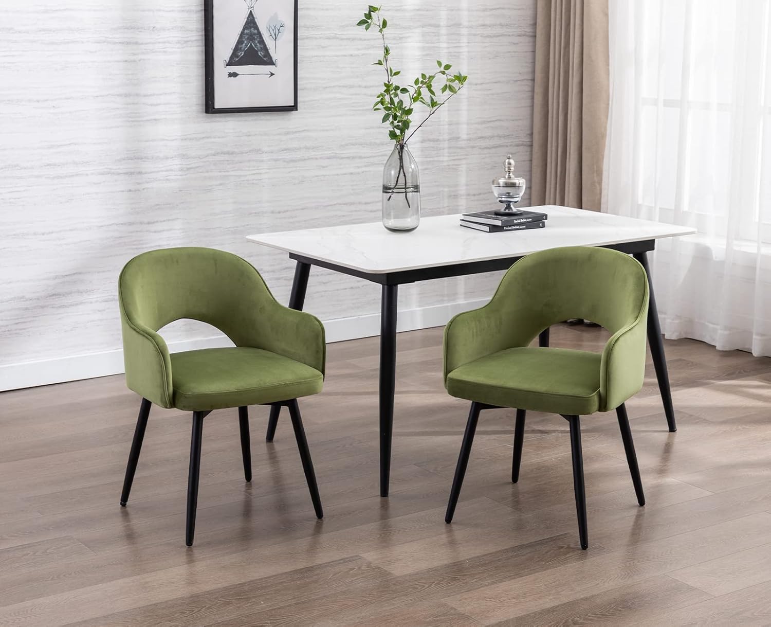 Avis sur chairus Lot de 2 Chaises de Salle à Manger en Velours Moderne Fauteuil Rembourrée Chaise Pivotante à 360° pour Bureau Salon (Vert-2 (Velours))